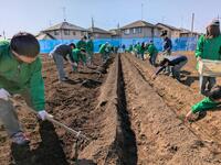 グリーンサイエンス科1年生の総合実習の授業で、ジャガイモ植えを行いました。今回は1500個の種イモを30㎝間隔で植えました。このジャガイモは、6月に地域の園児たちと一緒に収穫する予定です。