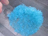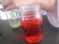 ④アルギン酸Naを滴下後     ⑤取り出した人工イクラ