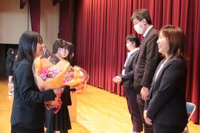 終業式では校長訓話として、生徒各々がこの1年をしっかり振り返り、改めるところは改め、自分の進路に向けて目標を持って学校生活を送ることが大切であるというお話をいただきました。最後に、離退任式も行われ、お世話になった先生方より挨拶をいただきました。