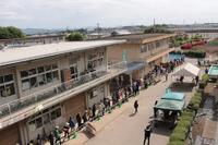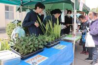 校内も長い列に 苗を選ぶ来場者 会計対応する生徒