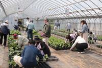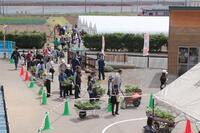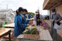 準備をする生徒 草花の販売一覧 駐車場も満車に