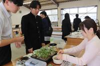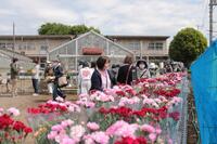 金時草の販売 人気のカーネーション 花の説明をする生徒