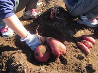 サツマイモは、生徒たちが定植・栽培管理を行ったもので、様々なサイズのイモを園児たちと一緒に掘ることができました。泥だらけになりながらも園児たちと過ごすこの時間は、高校生にとってもとても良い経験になりました。