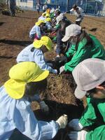 グリーンサイエンス科生徒 地元幼稚園児とサツマイモ掘り体験