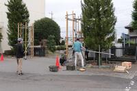 生物生産科ガーデニングコースが使用している造園実習室前には過去、授業で生徒達が施工した庭園があります。この庭園は竹垣が古くなり、土留めのブロックも崩れ、植栽も通行の妨げになっていました。そこで昨年度から科目「課題研究」において、この庭園を施工し直し、ウッドデッキやウッドフェンスを施工、植栽を移植し、通路もインターロッキングブロックで舗装して拡張ました。今年度は土留めのブロックの撤去とアスファルトによる舗装、松の周辺の防草対策としてコンクリート平板の設置、簡単に撤去可能なパーテーションタイプの竹垣の施工を行い、実用性の向上と管理作業の軽減、安全性の確保と景観美化を実現することができました。竹垣には梅の花をデザインした竹灯籠を8本設置し、松竹梅をモチーフにした和モダンな庭園が完成しました。