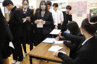 生徒会の立会演説 農業クラブの立会演説 本人確認後投票用紙を配布
