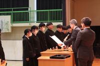 12月24日(水)2学期の終業式が行われました。式に先立ち、2学期様々な大会で入賞した生徒の表彰式と、生徒会・農業クラブ新役員の認証式が行われました。