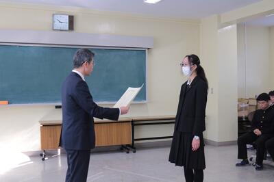 12月24日(水)2学期の終業式が行われました。式に先立ち、2学期様々な大会で入賞した生徒の表彰式と、生徒会・農業クラブ新役員の認証式が行われました。