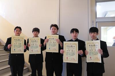 表彰を受けるレスリング部員 研究部の表彰 役員の認証式