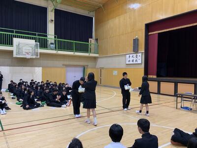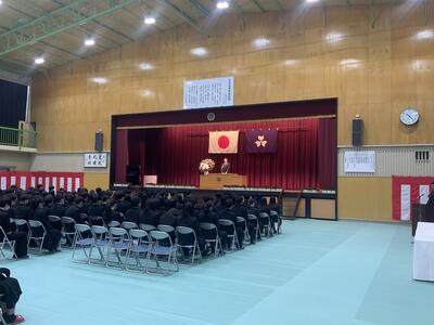 終業式では校長訓話として、生徒各々がこの1年をしっかり振り返り、改めるところは改め、自分の進路に向けて目標を持って学校生活を送ることが大切であるというお話をいただきました。最後に、離退任式も行われ、お世話になった先生方より挨拶をいただきました。
